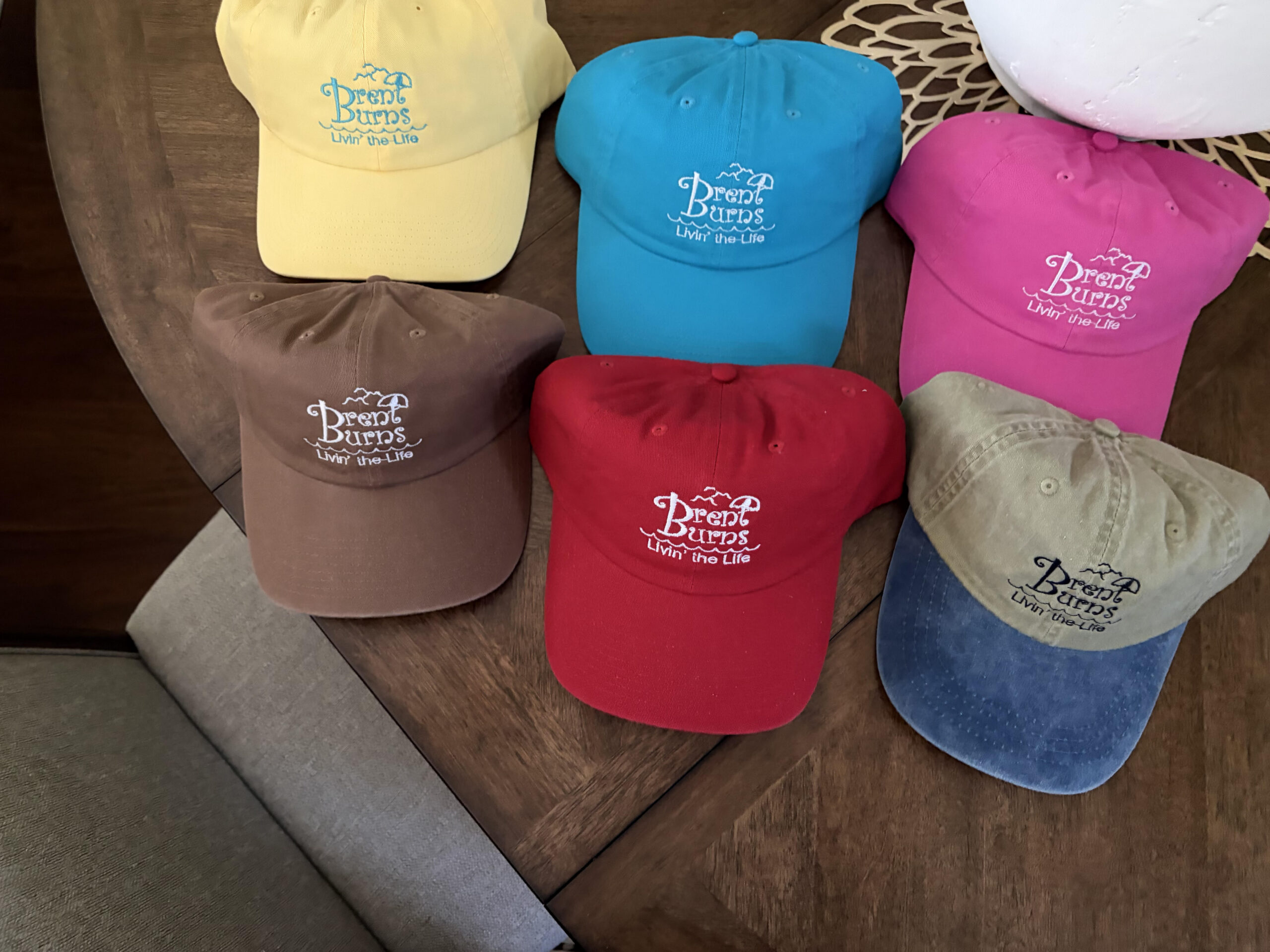 Back row, L-R, Turquoise with white, Orange with blue, red with white
